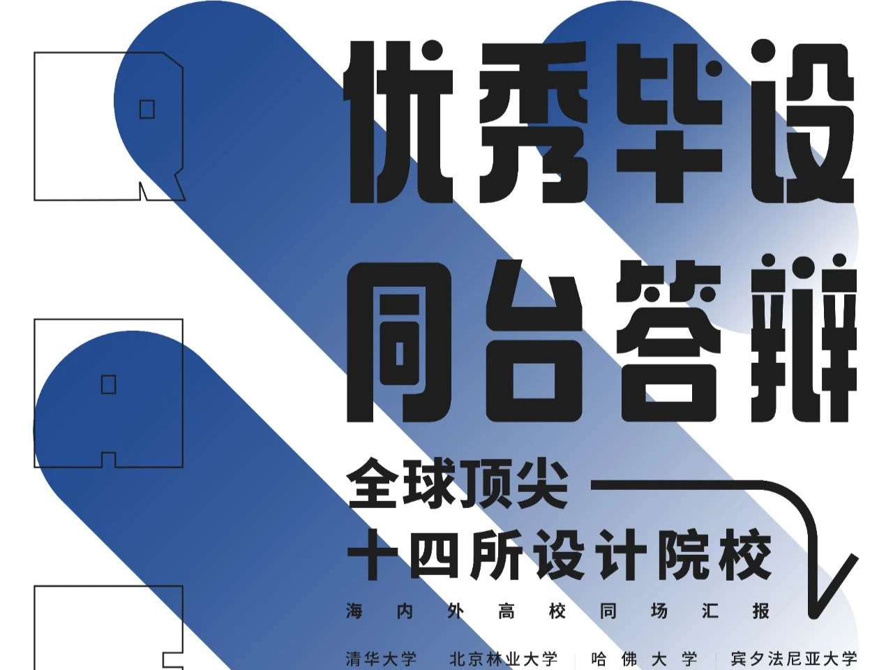 海内外优秀设计答辩交流会来自国内清华、同济、东南、天大、华工、北林、央美,携手海外哈佛GSD、宾大、CMU、RISD、UCL、UAL、RCA 14所世界顶级院校将汇聚一堂,覆盖建筑规划,风景园林,室内环艺,交互工设4大类专业为全国设计类专业的同学再次带来一场超高品质的答辩体验