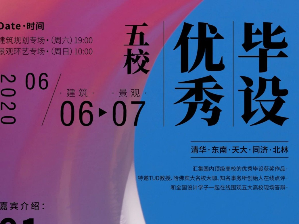清华 · 东南 · 天大 · 同济 · 北林 在线围观五大顶级高校优秀毕设现场答辩 TUD教授 · 哈佛宾大名校大咖 · 知名事务所创始人 特邀大咖嘉宾在线点评,分享设计经验 看看这些获得优秀毕设奖的作品是如何呈现的 又有哪些值得学习的设计思路