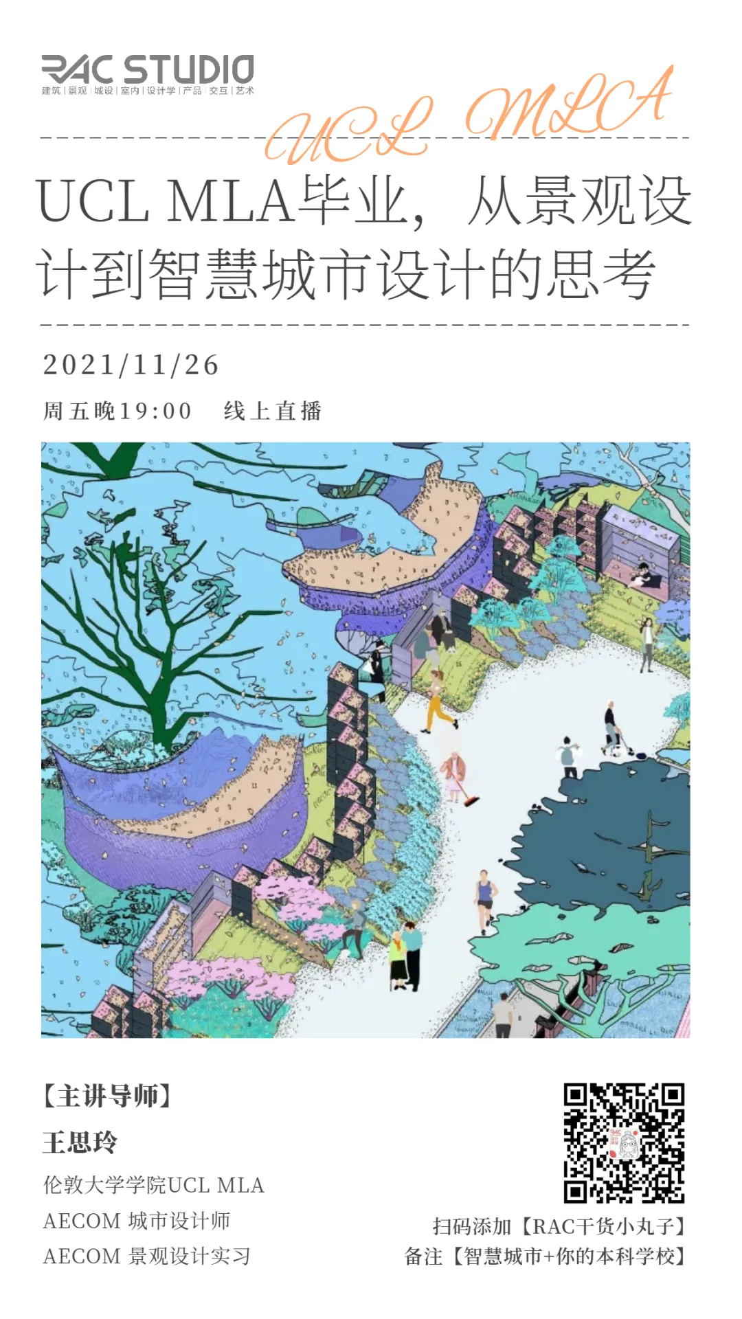 “智能”、“交互”、“大数据”已经渗透到各行各业,他们如何与城市发展相结合,继而解决城市未来的问题,是当今行业的热门趋势。作为城市的设计者,或正在学习城市相关专业的学生,规划绝非只是画图那么简单!本次系列讲座带你领略UCL巴院的特色课程—空间句法、Smart Cities、MAUD特色研究组RC14&RC18,以及AI和大数据在城市中的应用,在巴院的就读体验,这些课程以后的就业方向等等~